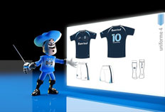 Na foto não é possível ver muito bem, mas a cor da camisa é azul marinho e os calções são brancos. Esta combinação foi escolhida com 45,82% dos votos, e estava concorrendo com as opções: